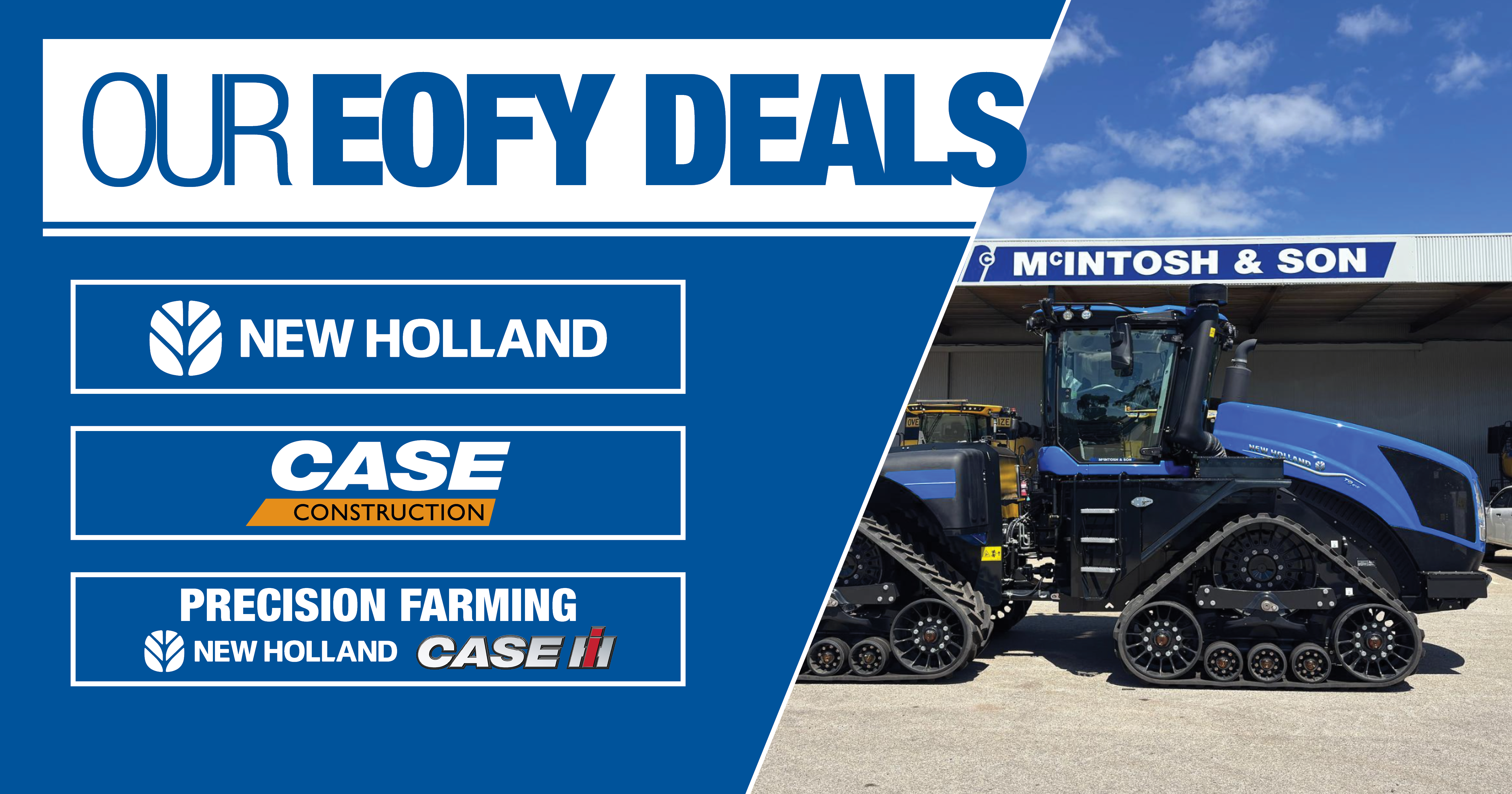 Take advantage of our End of Financial Year deals across leading brands including CASE Construction Equipment, New Holland Agriculture, and Precision Farming.